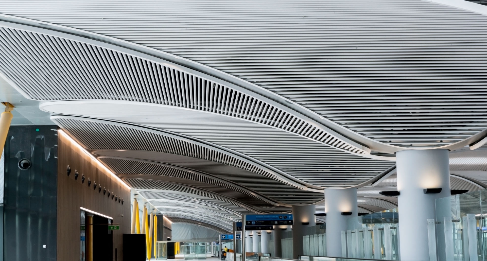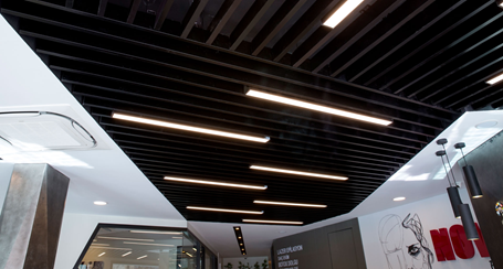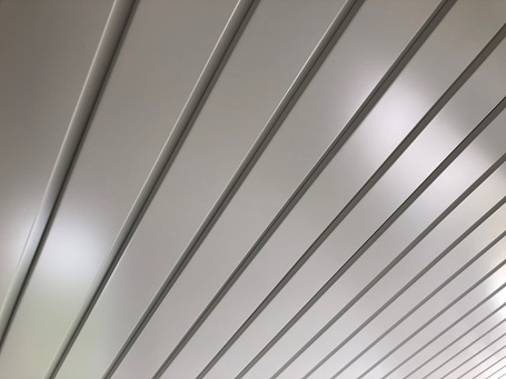 Mehr Informationen zu abgehängten DOBNER Smart-Baffle-Decken aus Aluminium →→