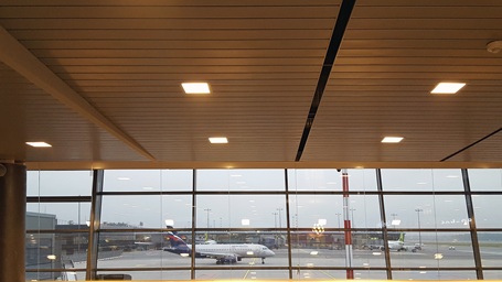 Die abgehängten ORIGINAL DOBNER Metalldecken sind besonders gut geeignet für Flughafen-Gebäude!