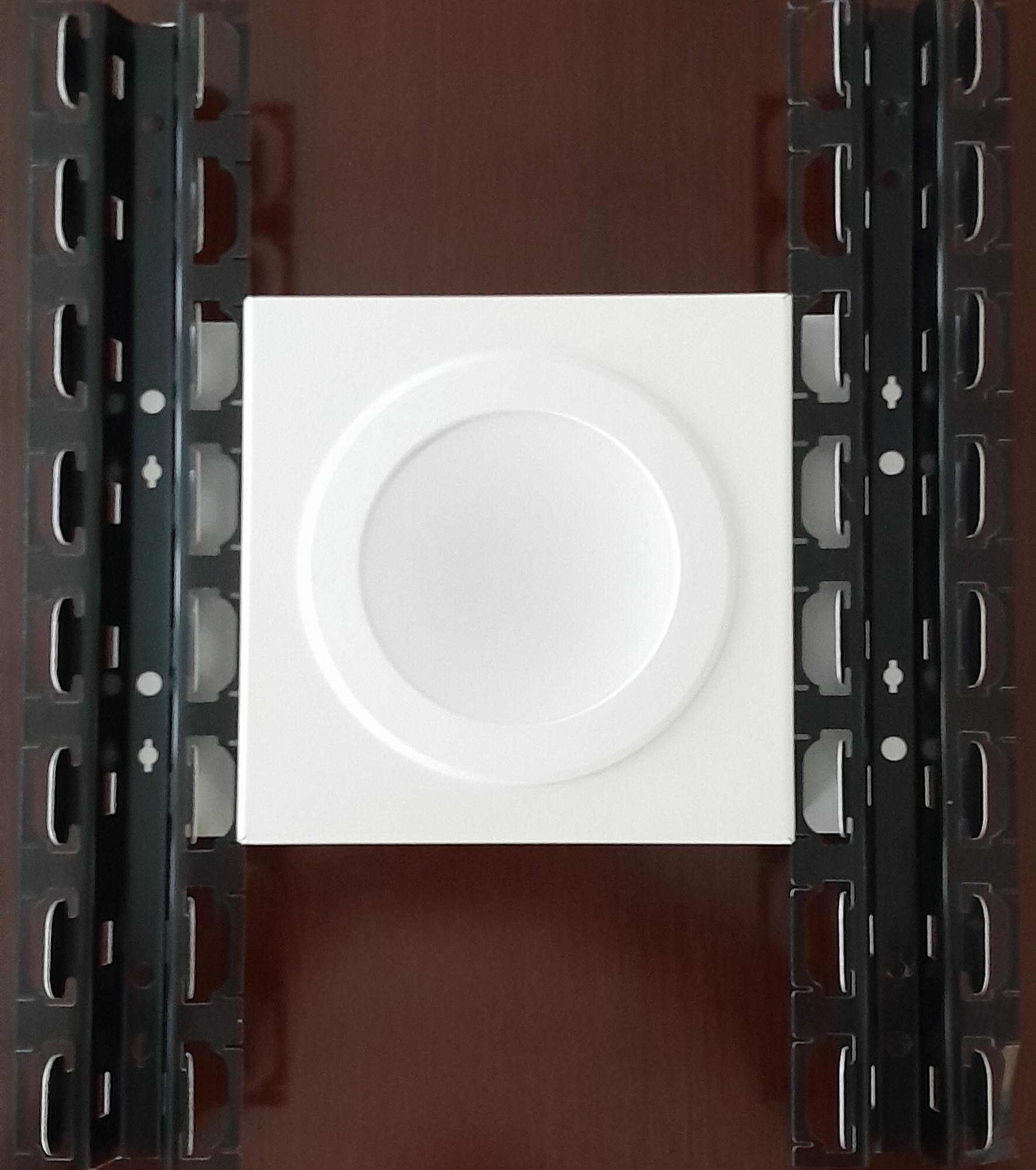 Lampen, Lüftung, Sprinkleranlagen, etc. können mit systemkonformen Zusatzmodulen in die Decke integriert werden. Zusatzmodule und auch Revisionstüren müssen separat abgehangen werden. Zusatzmodule werden im Modul 200, 184x184 mm und Modul 300, 284x284 mm mit separaten Tragschienen geliefert. Loch Maße werden vom Kunden vorgegeben. Revisionstüren können mit Nonius-Abhängern oder Gewindestangen auf jeder Ecke montiert werden.Planheit im Randbereich
